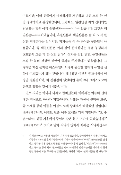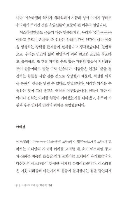 고대 이스라엘에서 현대 그리스도교 신학에 이르기까지 3천여 년 동안, 신에 대한 인식은 주변 환경 및 시대의 흐름과 영향을 주고받으며 변해 왔다. 따라서 유대교-그리스도교 역사에는 (단일하지 않은) 다양한 신 이해가 존재하며, 각각의 이해 방식은 당대의 사회문화적 현실과 상관관계가 있다. 이 책은 다양한 ‘신론들’ 사이의 연관성 및 ‘역사적 현실’과의 연관성을 중심으로 그리스도교의 신 이해를 살핀다.