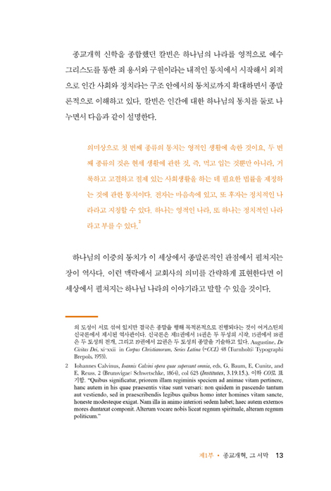 6장 종교개혁 신학의 총체적 종합: 칼빈의 하나님 나라