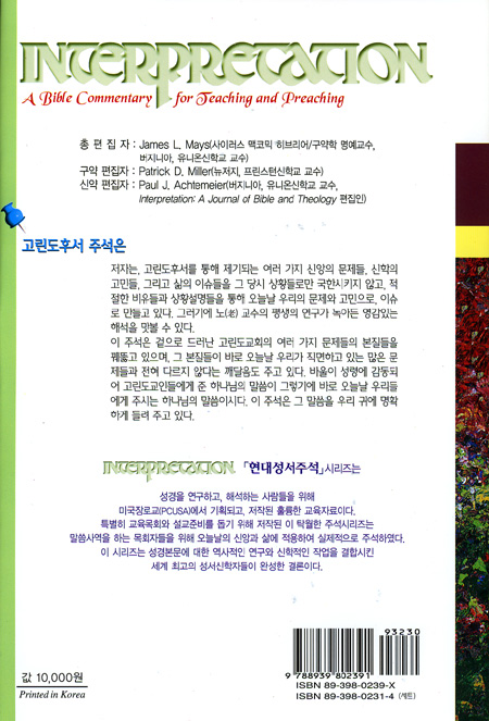 성경을 가르치는 이들과 설교자들, 그리고 성경을 진지하게 연구하는 모든 이들은 여기서 성경본문의 현대적인 의미와 그 중요성을 발견하는 일에 대한 해석학적인 책임성을 진지하게 받아들이는 한 성서 주석을 만나게 될 것이다.