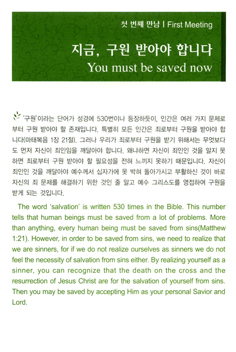 첫 번째 만남 - 지금, 구원 받아야 합니다
