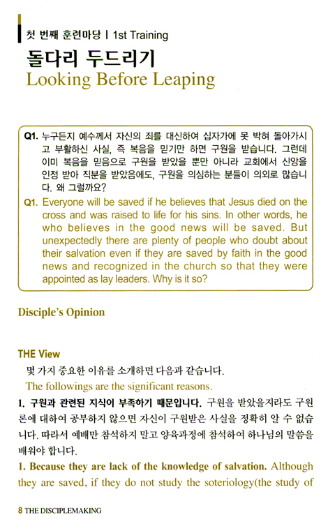 본서는 ‘국내 유일의 한영대조 신앙훈련교재’로서 쉽고 단순한 제자훈련교재를 찾는 분들에게 목마른 날의 얼음냉수가 될 것입니다. 특별히 영어로 말씀훈련을 받고 싶어하는 신학생, 중고등학생과 대학생, 선교사 지망생, 장단기 선교사, 영어권에 거주하는 교포, 교회나 직장의 소그룹 모임에서 영어로 말씀훈련을 하고 싶은 분, 국내에 거주하는 외국인 크리스천에게 아주 좋은 영적인 친구가 될 것입니다.