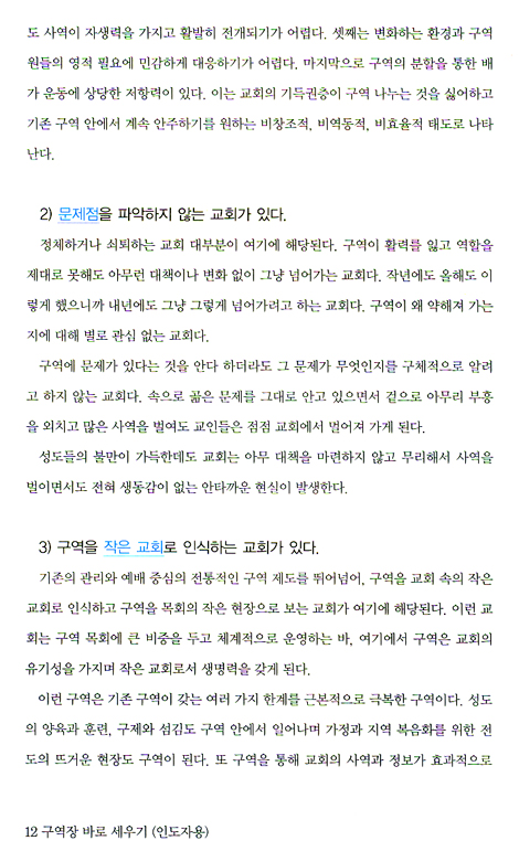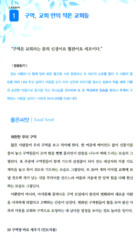 구역은 하나님의 은혜 나눔과 교제의 장(場)이 되어야 한다.