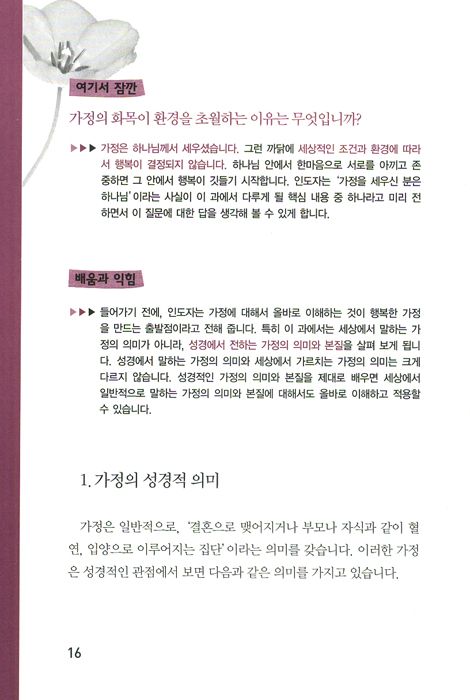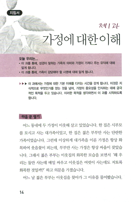 작은 천국으로서의 가정을 위해 반드시 알아야 할 사항들을 배우고 나누게 됩니다.