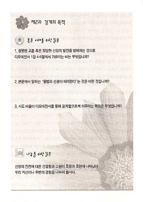 또한 앞으로 그 일을 위하여 부르심을 받은 일꾼들의 자세와 책임을 디모데전후서에서 확인할 것입니다.