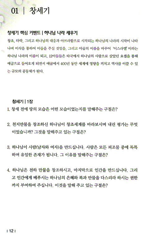 「하나님 나라 이야기, 통독 성경읽기」는 모든 교파, 교단이 인정하는 성경을 가지고 누구나 쉽게 읽을 수 있도록 했습니다. 또한 신학적인 깊은 내용을 질문으로 하지 않았습니다. 해석을 중심으로 한 것이 아니라 오직 성경을 읽는 것입니다.