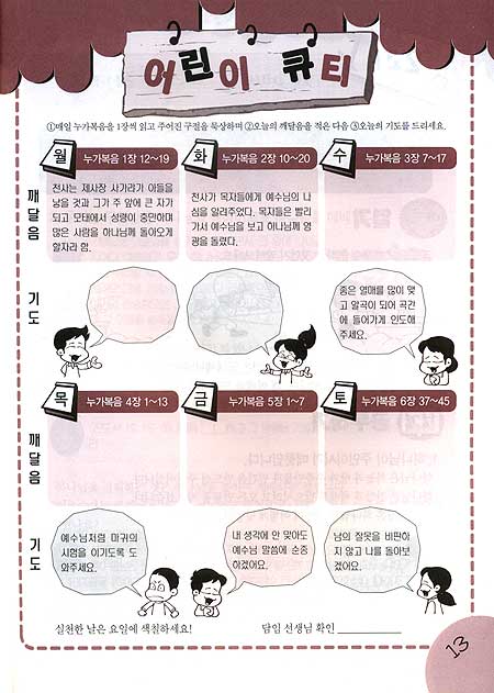 7. 성경을 차례대로 읽으며 큐티를 하도록 하였다