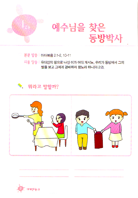 성경을 학습할 수 있는 공과이다. 발달관계별 학습 능력의 차이가 가장 두드러지는 어린이 부서는 '유치부',