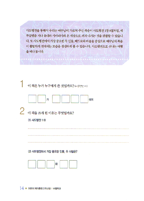 인도자 지침서를 단순한 해답집으로 생각해서는 안됩니다. 중요한 것은 교사가 먼저 자신의 것으로 받아들여 실천하고, 학생들이 따라서 실천하도록 하는 것이 중요합니다.