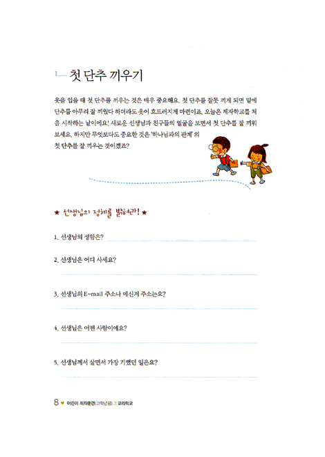 적용 부분입니다. 각 과별로 주제에 맞는 활동과 나눔으로 구성되어 있으며, 아이들이 적극적으로 참여하기 위해서는 선생님들의 각별한 노력이 필요합니다.