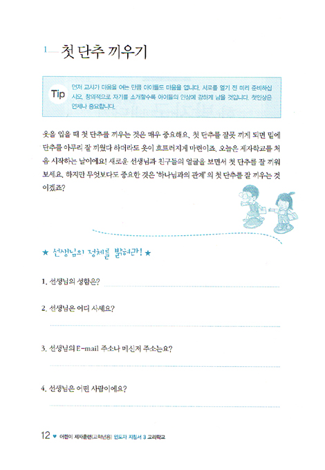 인도자 지침서를 단순한 해답집으로 생각해서는 안됩니다. 중요한 것은 교사가 먼저 자신의 것으로 받아들여 실천하고, 학생들이 따라서 실천하도록 하는 것이 중요합니다.