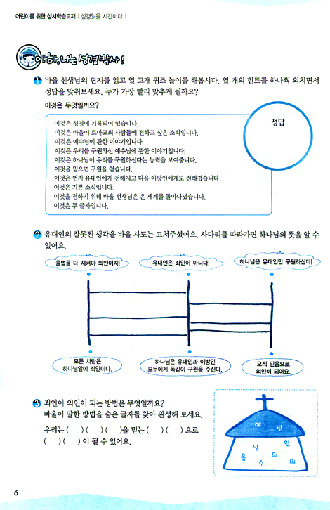 ‘아하,나는 성경박사!’에서 본문 내용에 대해 어린이들의 이해를 돕습니다.