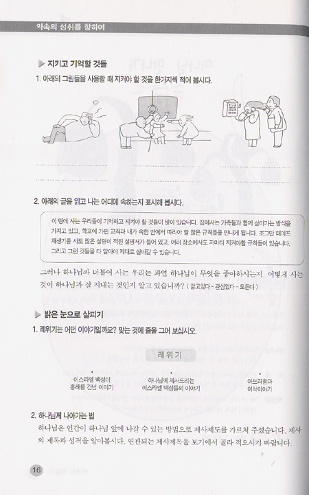 -성경을 꼼꼼이 보는 교재가 아니므로 한 과가 담는 성경이 꽤 많고, 넓습니다. 따라서 오늘 만나게 되는 중요한 성경말씀을 먼저 알게 하였습니다.