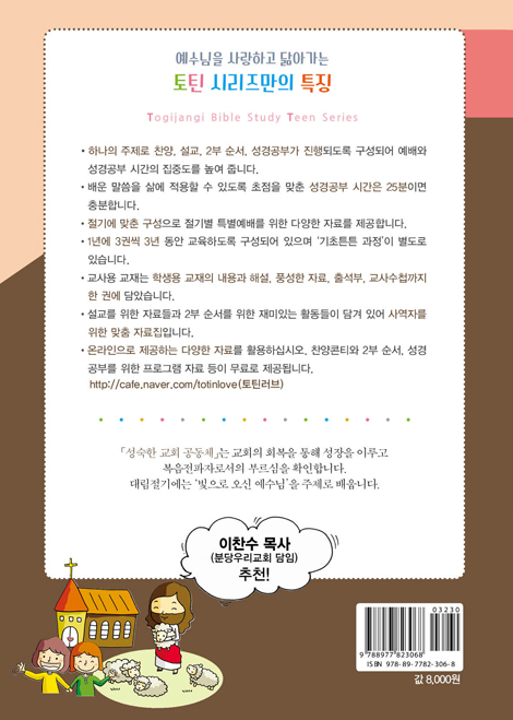<토기장이 바이블 스터디 틴 시리즈>가 다음 세대를 말씀으로 양육하며 비전을 심어주는데 크게 사용될 것을 기대하며 추천합니다.