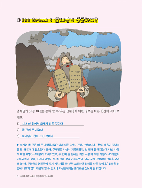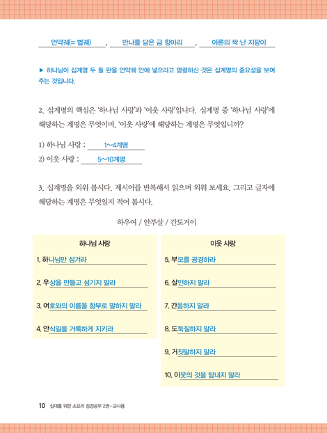 2. 1권-기본교리편 2권-주기도문 십계명편으로 나누고 각 권에 10과씩 배치
