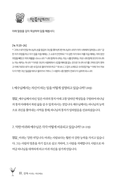 정답에 대한 설명을 잘 파악해서 아이들 에게 말씀이 주는 의미와 핵심사항을 잘 설명한다. 중심이 되는 말씀과 그에 대한 중요한 질문에 답을 찾음으로 성경 말씀에서 주는 교훈이 무엇인지 확실히 깨닫도록 지도한다.