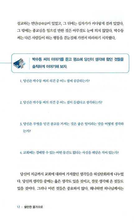 '쉴만한 물가으로'는 두 가지 목적을 가지고 개발된 교재입니다.