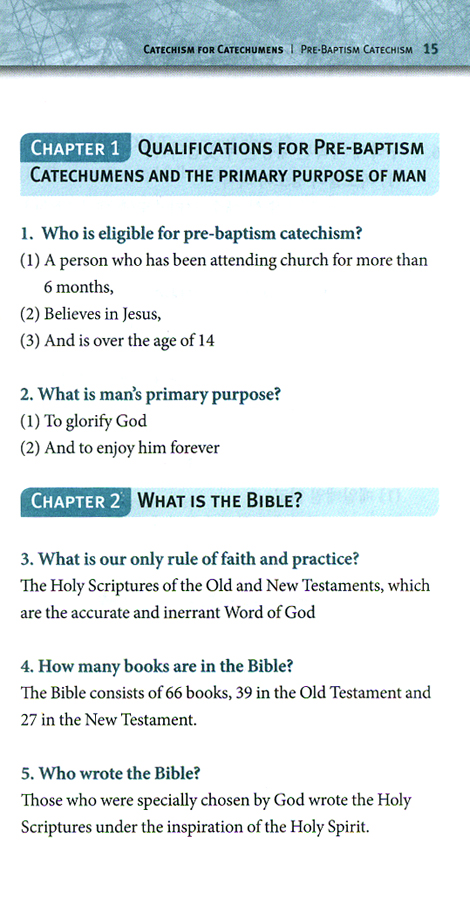 제1장(Chapter) 학습 문답자의 자격과 사람의 목적(Qualifications for Pre-baptism Catehumens and the primary purpose of man)
