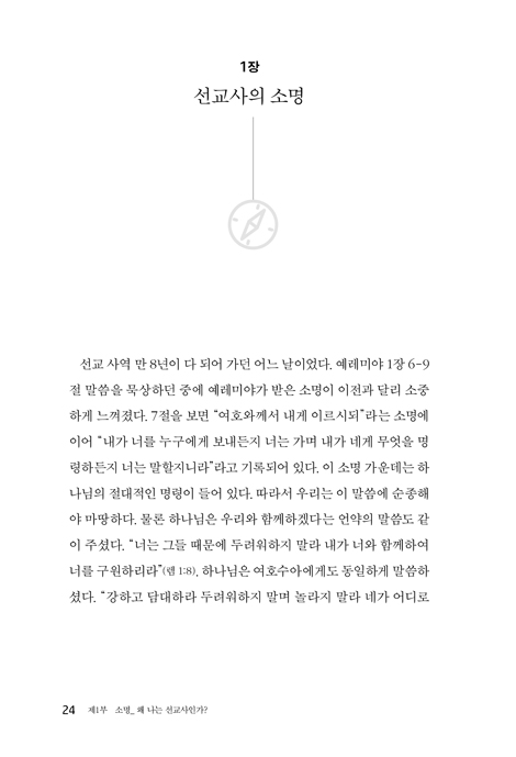․ 선교사로 나갈 것인가, 혹은 선교지에서 선교 사역을 계속할 것인가, 철수하고 본국으로 돌아갈 것인가를 결정해야 할 중대한 기로에 서 있을 때 우리는 선교적 소명을 확인해 봐야 한다.