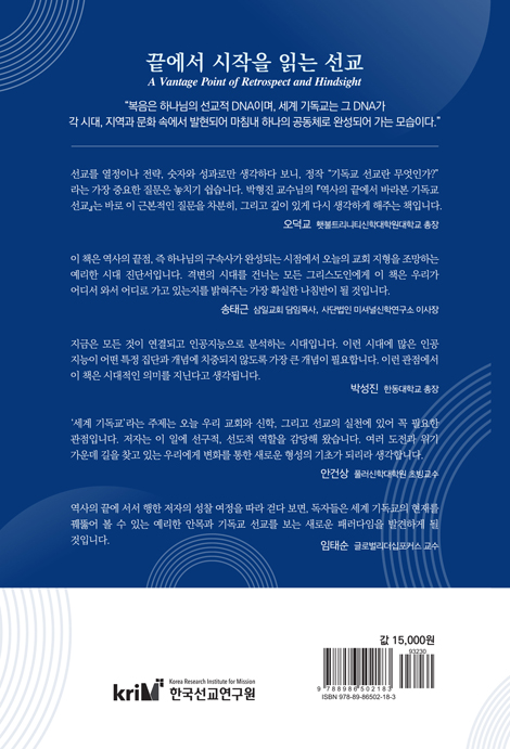 역사의 끝에 서서 행한 저자의 성찰 여정을 따라 걷다 보면, 독자들은 세계 기독교의 현재를 꿰뚫어 볼 수 있는 예리한 안목과 기독교 선교를 보는 새로운 패러다임을 발견하게 될 것입니다. - 임태순 글로벌리더십포커스 교수