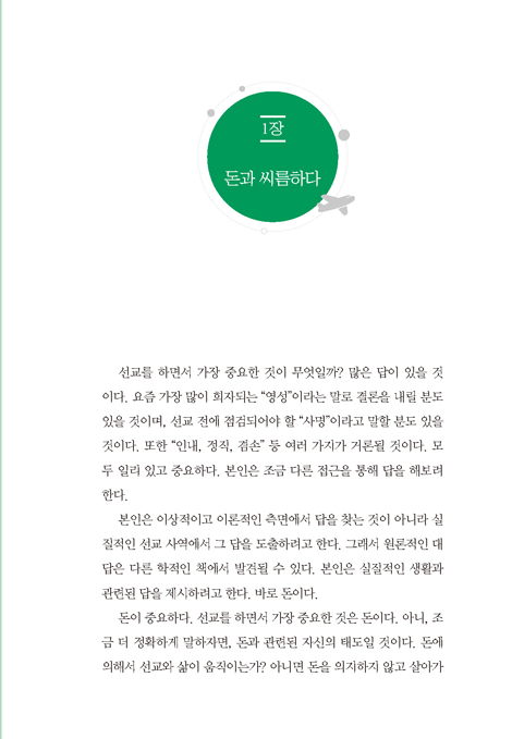 그의 글은 때묻지 않은 초임 선교사의 순수와 열정이 묻어나서 좋다. 선교지의 생생한 경험들 속에는 아프리카에 대한 첫 사랑의 향기가 진동하는 것만 같다. 재정문제는 선교사와 후원자들, 후원 교회 모두가 생각해 보아야 할 원리와 실제를 제공해 준다.