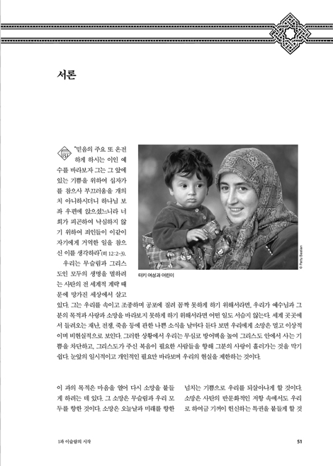 서론/ 무슬림 전도에 대한 온정적 접근법/ 새뮤얼 즈웨머/ 기독교 박해지수/ 무슬림에 대한 태도 선언/ 무슬림 여성은 왜 그리스도에게 끌리는가?/ 열매 맺는 사역