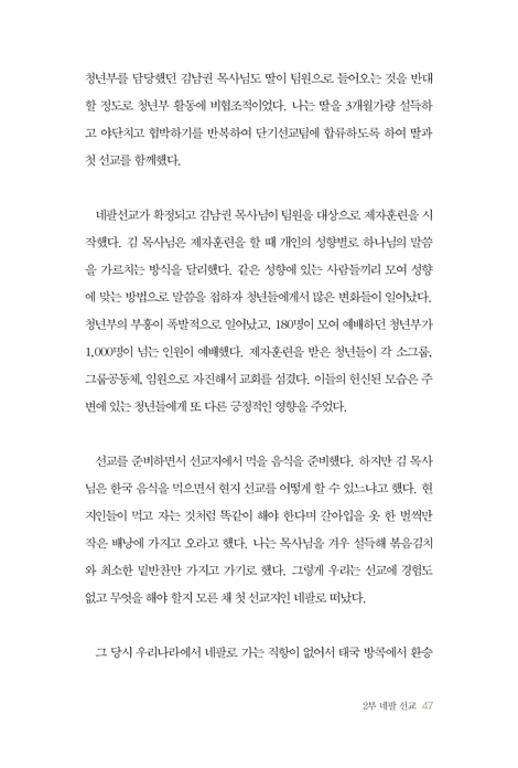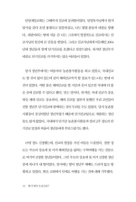본서는 오지로 선교활동을 다닌 저자의 간증이자 선교보서이다. 매년 청년부원들을 데리고 다닌 선교지 곳곳의 삶의 모습과 선교의 현장을, 저자가 직접 렌즈로 담은 것을 이번에 책으로 묶어서 출판한 이야기이다.