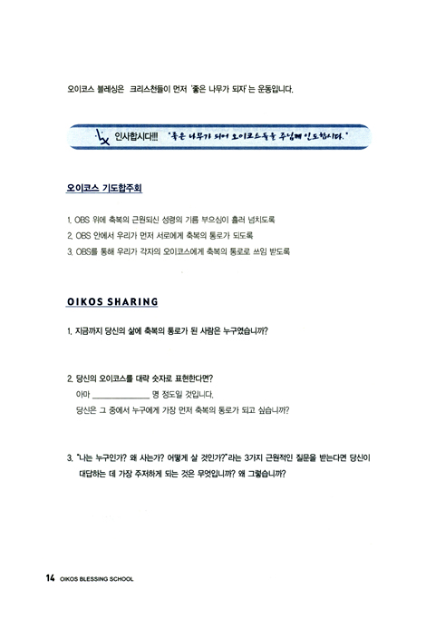 OIKOS BLESSING SCHOOL 전도가 살아나는 우리 교회 청년대학부 만들기