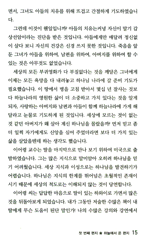 아무리 전도 훈련을 시켜도 안 되던 사람이 책 속에 있는 전도 편지를 뜯어내 전도할 사람에게 편지로 보내기만 하면 전도가 되는 것입니다. 이보다 더 쉬운 전도가 또 있을까요?