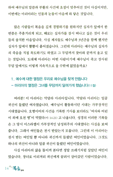 Chapter 01. 다시 복음 앞에! - 마리아 이야기 (요한복음 20장 11~18절)