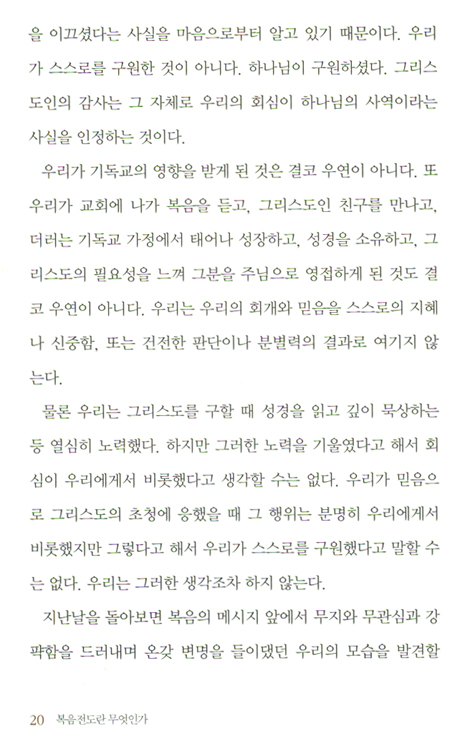 “하나님의 주권과 인간의 책임은 서로 적이 아니다. 서로 불편한 이웃이 아니고, 서로 끊임없는 냉전 상태를 유지하고 있지도 않다. 둘은 친구로서 서로 협력한다.” _본문 중에서