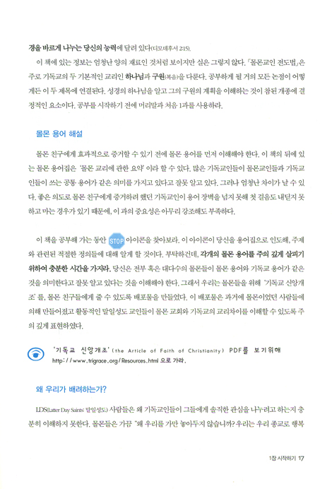 말일 성도 교인들과 당신의 믿음을 나누는 데 도움을 줄, 이해하기 쉬운 안내서를 찾고 계십니까? 이 책이 훌륭한 자료가 될 것입니다.