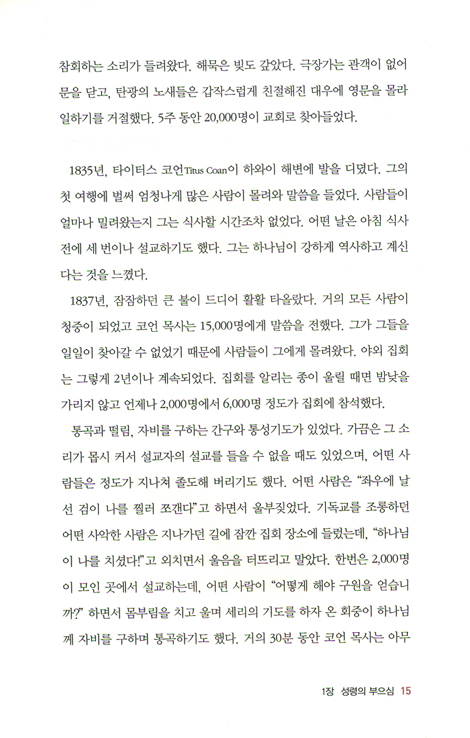 진정한 부흥이란 눈가림밖에 되지 않는 양적 성장이 아니라 겸손하게 죄를 고백하고 하나님이 부어주시는 마음을 따라 진실하게 성령을 간구하는 기도로 이루어진다.