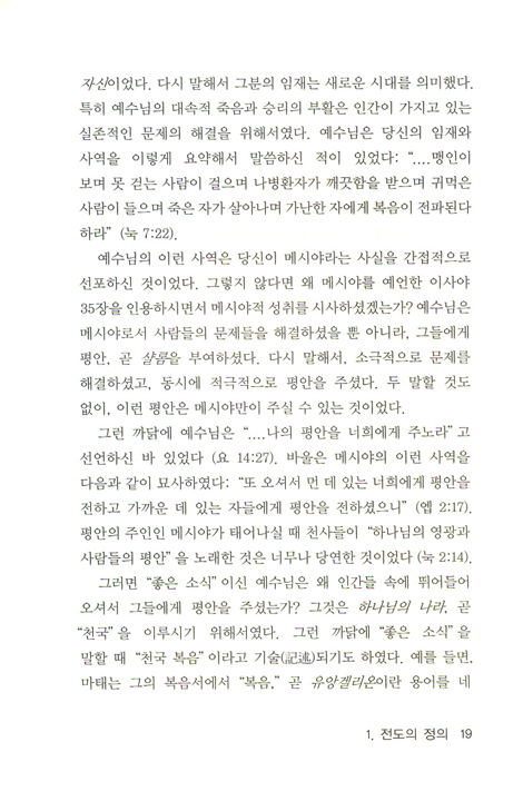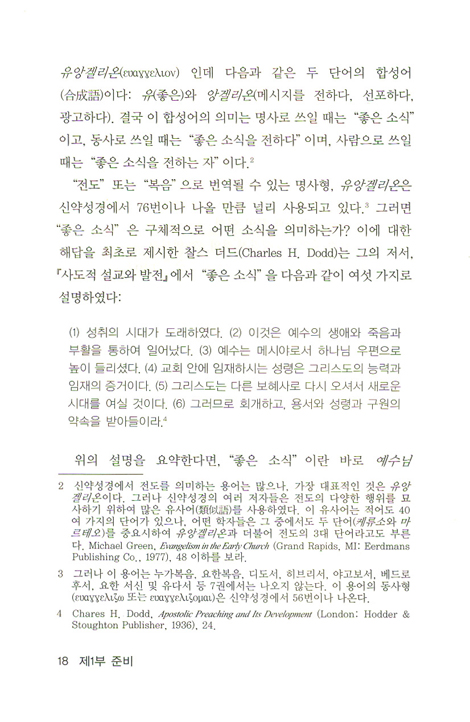 이 책의 이런 5가지 틀은 1974년에 있었던 ‘로잔국제전도자대회’에서 선언하여 모든 전도의 모델이 된 저 유명한 전도의 정의에서 가져왔다. 그 정의에 포함되지 않은 것은 ‘준비’인데, 이 책에서는 그 분야를 첨가시켰다.