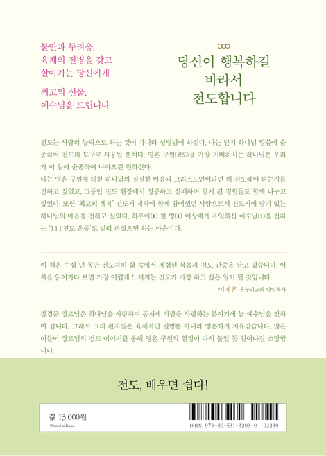 이 책은 수십 년 동안 전도자의 삶 속에서 체험된 복음과 전도 간증을 담고 있습니다. 이 책을 읽어가다 보면 가장 어렵게 느껴지는 전도가 가장 하고 싶은 일이 될 것입니다.