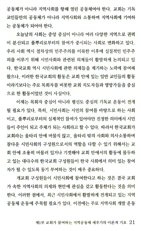1부 교회가 참여하는 지역공동체 세우기의 이론적 기초