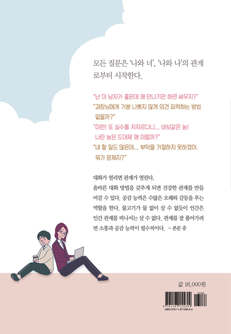 소설 미생의 주인공이 소공성의 상담가를 만난다면 어떨까? 4차 산업시대에 인간이 A·I를 넘어설 수 있는 영역 중 하나는 소통과 공감이다. 맘에 안드는 직장상사, 어긋나기만 하는 연애전선, 풀리지 않는 관계의 문제로 고민하는 이들을 위한 필독서.