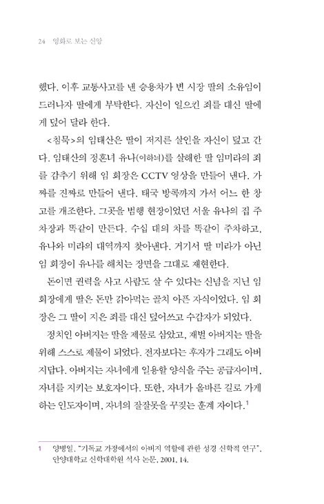 『영화로 보는 신앙』은 교회 다니는 사람으로서 쓴 자성의 글이자 회개의 칼럼입니다.