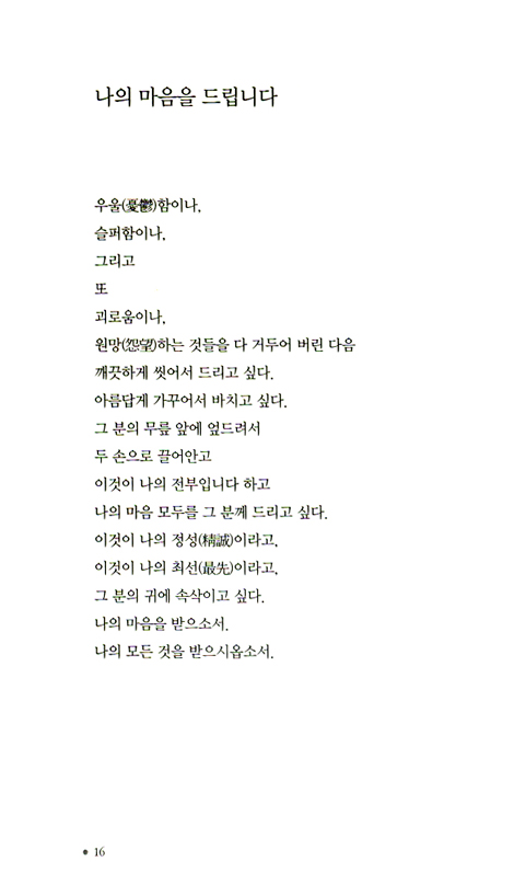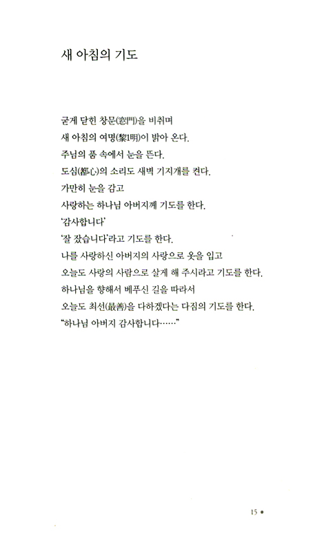 나는 누구인지 나를 찾고 있다. 집에서, 들에서, 땅에서, 하늘에서, 그러나 거기에는 내가 없는 허공일 뿐이다. 내가 없는 존재는 존재가 아닌 허무 뿐이다. 나는 어디서 왔을까? 어머니의 모태를 타고 태어난 그것이 나의 전부라면 차라리 나는 내가 아니기를 바란다. 내가 찾고 있는 나는 것이 아니다. 그렇다면 나는 어디에서 온 누구일까? 내가 어디에서 온 누구인지를 찾고 있다. 밤에도, 낮에도, 언제 어디에서나, 나를 찾아서 헤매고 있다. 나의 나 됨을 찾고 있다. 어디에서 와서 어디로 가고 있는 나 인가를 찾고 있다.