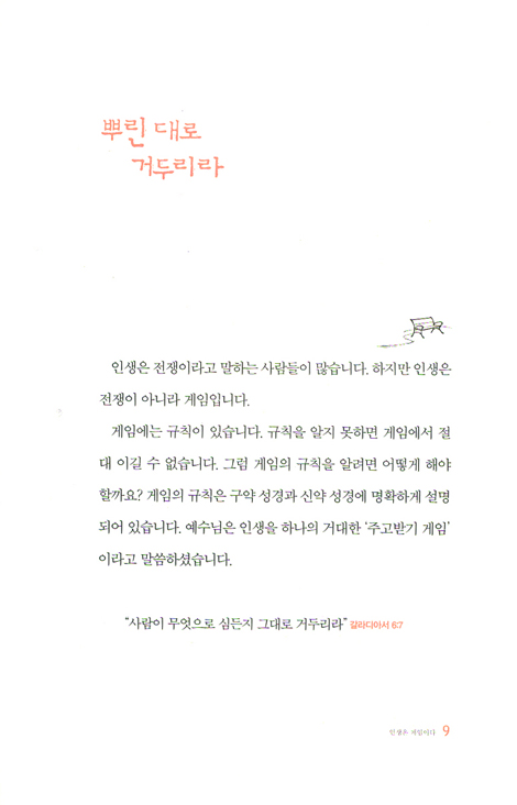 이 책을 통해 오랫동안 구속하고 있던 모든 속박으로 벗어나 진정한 자유를 누리게 되기를 바란다. 하나님이 우리를 위해 예비하신 설계가 눈앞에 드러나고, 우리 내면에 잠재되어 있던 재능도 나타나기를 진심으로 기원한다. 인생 게임에 참여하는 동안 힘든 상황에 맞딱드리게 될지라도 흔들림 없는 믿음으로 반드시 소망한 바를 이루기를…….