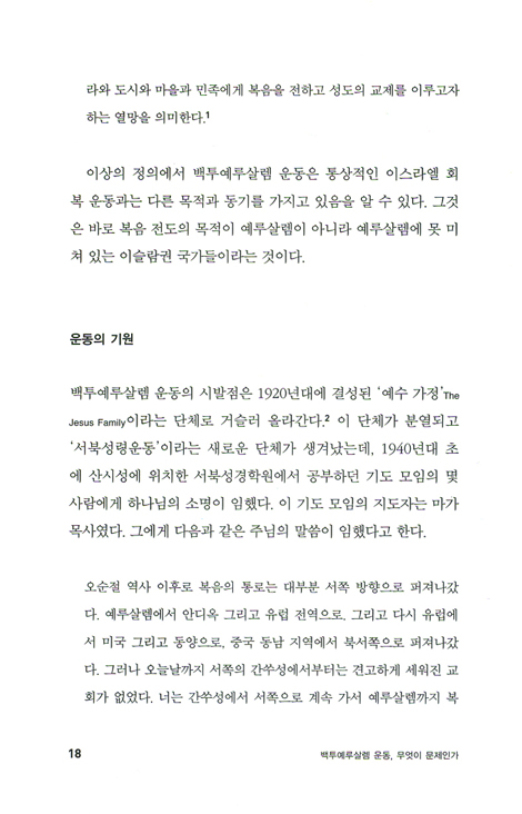 선교의 열정이라는 순수한 명분의 베일에 가려 쉽게 드러나지 않는 백투예루살렘 운동의 치명적인 문제의 실체가 무엇인지를 이 책만큼 예리하면서도 적확하게 간파하기는 어려울 것이다.