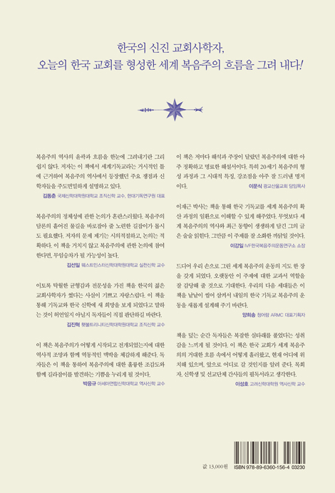 드디어 우리 손으로 그린 세계 복음주의 운동의 지도 한 장을 갖게 되었다. 앞으로 오랫동안 이 주제에 대한 교과서 역할을 잘 감당해 줄 것으로 기대한다. 한국 개신교가 날로 덩치를 키워가던 시절에는 정작 자신도 남도 돌아볼 안목이 없었다. 그러나 이제 성찰의 시대가 도래하였다. 우리의 다음 세대들은 이 책을 낱낱이 씹어 삼켜서 내일의 한국 기독교 복음주의 운동을 새롭게 설계해 주기 바란다.