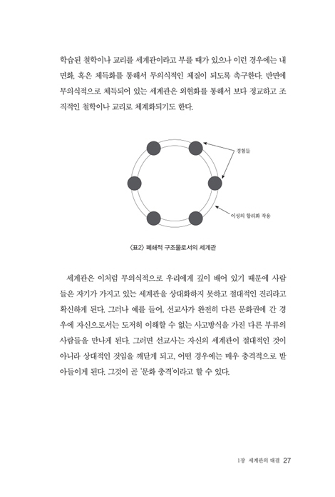 세계관의 의미 / 세계관과 문화 / 세계관의 속성 / 세계관의 변화와 선교 / 세계관과 혼합주의 / 세계관과 제자 훈련 / 세계관과 내적 치유 / 세계관과 영적 성숙 / 세계관과 영적 전쟁