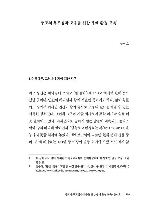 창조의 부르심과 모두를 위한 생태 환경 교육 | 유미호