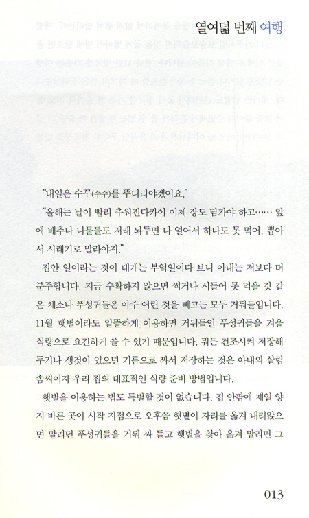 아버지인 오정면 선생은 일흔이라는 나이에도 아랑곳 없이 1년 농사가 끝나면 배낭 하나 들춰