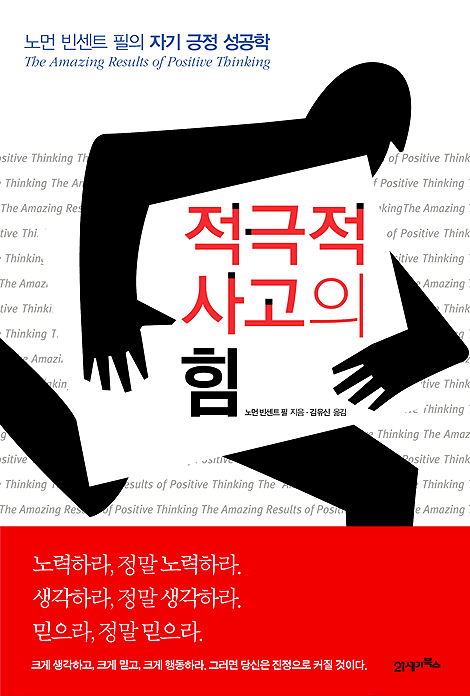 ‘적극적 사고의 힘(노먼 빈센트 필 지음, 김유신 옮김, 21세기북스)’은 적극적 사고라는 역동적인 변화 공식을 통해, 실패를 딛고 어려움을 이겨낸 사람들의 ‘적극적 사고의 결과 보고서’다. 이 책은 ‘만인의 성직자’라 불리는 미국의 유명한 신학자이자 자기계발의 대가인 노먼 빈센트 필 박사의 강연을 듣거나 저서를 읽고 ‘적극적 사고의 공식’을 일상에 실천해 얻은 수많은 결과들을 분석하여 기존의 ‘성공적인 삶의 원리’를 더욱 풍부하게 만들었다.