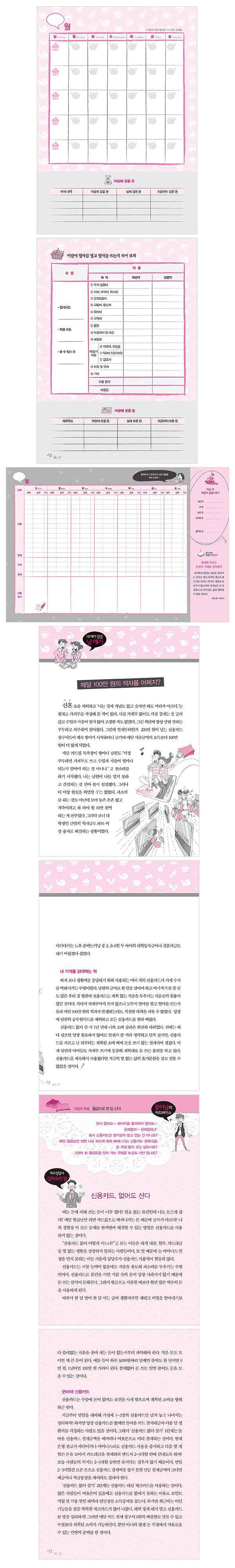누구나 연초에 의욕적으로 가계부를 시작한다. 하지만 안타깝게도 3개월 이상 지속하려면 엄청난 의지가 요구된다. 그런데 이 책은 매주 독자들의 의욕을 북돋아 주는 코너가 있어 늘 새로운 마음으로 시작할 수 있도록 섬세한 장치도 해 놓았다.