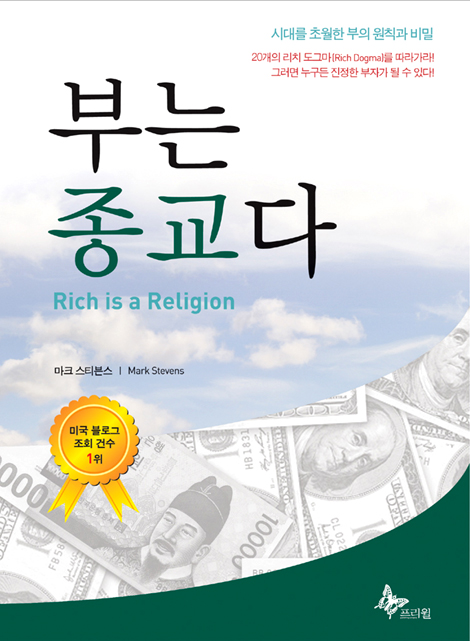 • • 이 책은 젊은 시절의 고난과 역경을 극복하고 백만장자의 대열에 오른 저자 마크 스티븐스가 미국의 존경받는 부자들의 실제 사례와 자신의 경험을 바탕으로, 우리가 돈을 어떻게 인식하고, 벌고, 관리하고, 사용해야 진정한 부자가 될 수 있는지, 그 원칙과 비밀을 소개하는 책이다. 부에 대한 그의 예리한 통찰력이 담겨있는 48개의 단원 중 중요한 사항을 20개의 리치 도그마(Rich Dogma)로 요약하여 우리를 ‘부의 종교’의 길로 안내한다. 그는 책 속에서 이렇게 말한다.