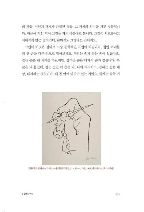 그러니까 오늘 《말테의 수기》를 읽는 것은, 그저 문학작품을 읽으라는 게 아니라, 우리 일상 속에서 굳은살이 박여 아무리 만져도 느껴지지 않는 그 생명을, 라이너 마리아 릴케의 손을 통해서 긁어보자는 것이지요. 릴케의 손톱으로 피가 나도록 긁어보자는 거예요. 그러면 그 굳은살 속에 말랑말랑하고 아주 여린 여러분들의 생명이 숨겨져 있었음을 알게 됩니다. 우리는 눈물 없이 그 생명을 만나지 못합니다. 왜요? 그 생명은 오래가지 않는 것이기 때문이에요. 돌멩이는 오래가도, 우리가 그토록 갈망하고 아끼고 사랑하는 생명은 절대로 오래가지 않습니다. 내일 사라질지도 모른단 말이죠. _108쪽