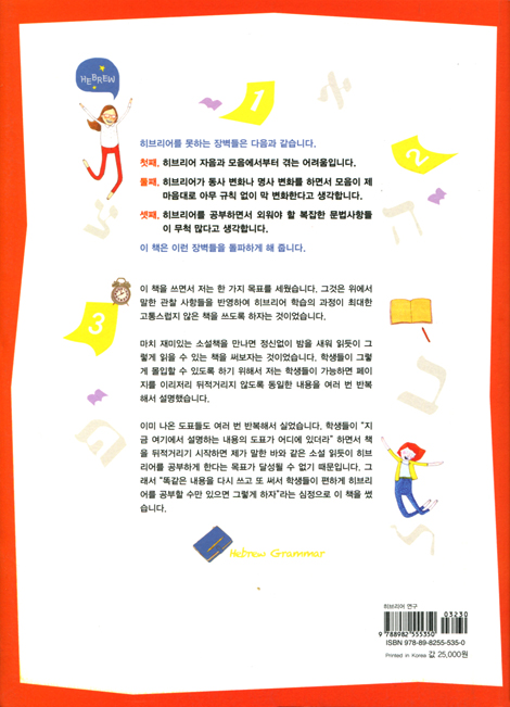 이 책은 히브리어라는 언어에 대한 저의 통찰들을 담고 있습니다. 한없이 복잡해 보이는 히브리어 동사나 명사 등의 변화가 거의 대부분 몇 가지 간단한 법칙들에 기초하고 있다는 것을 깨닫는 순간부터 저는 히브리어라는 언어는 상당 수준까지 꽤 쉽게 습득될 수 있다는 것을 확신해 왔습니다. 그리고 이 확신은 지금까지도 한 번도 변한 적이 없습니다. 이것이 이 책을 쓰게 된 동기입니다.