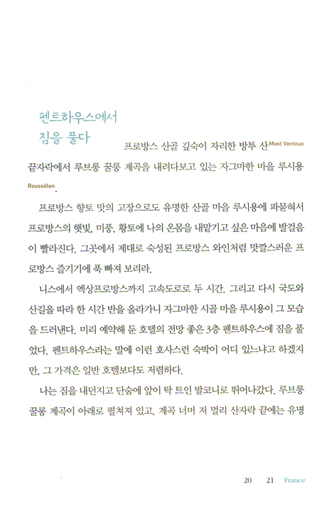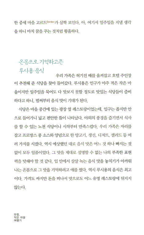 나에게 해외여행을 묻는 모든 이들에게 조용히 『유럽, 작은 마을 여행기』를 권해 주고 싶다. 그만큼 이 책은 숨겨진 유럽의 명작 마을들로 가득한 멋진 책이다.